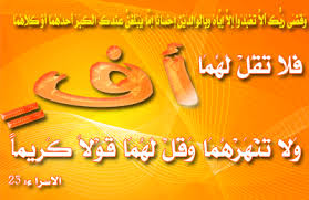 2 - لا ينبغي للإبن أن يتضجر منهما ولو بكلمة أف بل يجب الخضوع لأمرهما، وخفض الجناح لهما، ومعاملتها